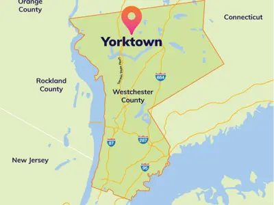 A suburb of the New York City metropolitan area, Yorktown is 40 miles north of midtown Manhattan.