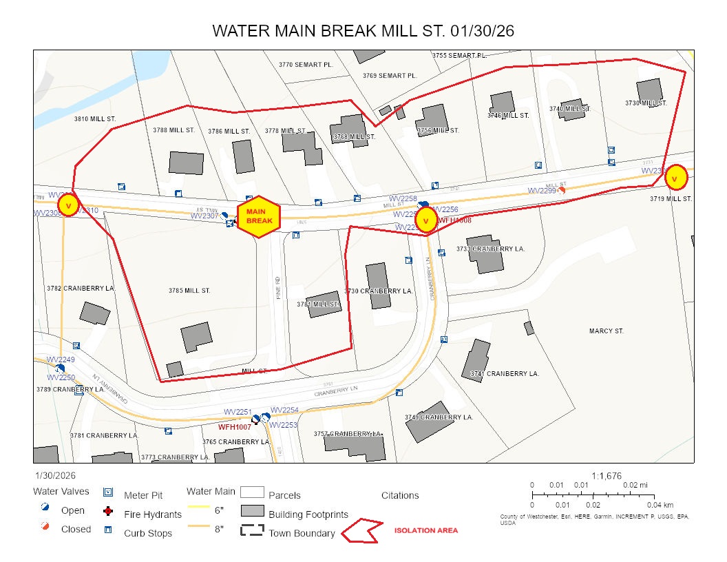 YWD staff have repaired water main breaks on Mill St. in Shrub Oak and on Chelsey Rd. in Mohegan Lake.
