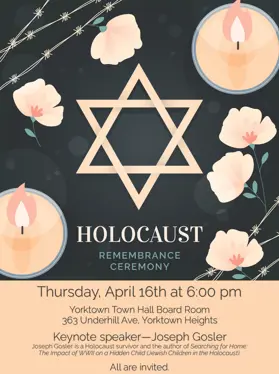 The Town of Yorktown will hold its annual Holocaust Remembrance Ceremony tonight at 6 p.m. This year’s event features guest speaker and author Joseph Gosler, who will share his harrowing and poignant journey as a "hidden child" in the occupied Netherlands during World War II.