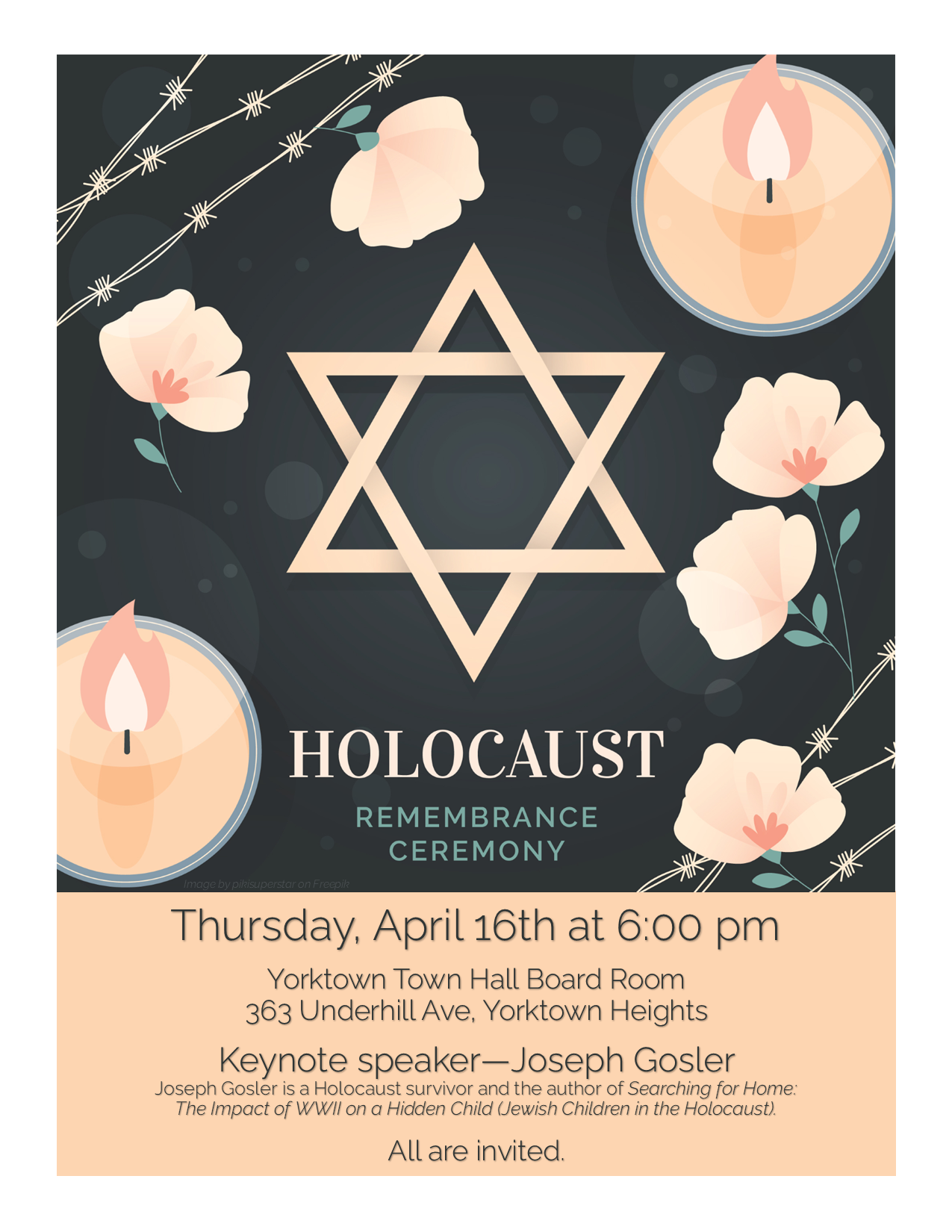 The Holocaust Remembrance Ceremony is on Thursday, April 16 at 6 p.m. at Town Hall, 363 Underhill Ave., Yorktown Heights.