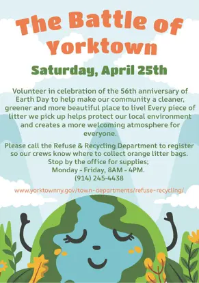 It’s a dirty fact that litter degrades our roadsides. Join in on the effort to keep Yorktown clean & green by volunteering to pick up roadside litter on Saturday, April 25th.