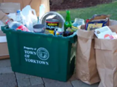 The Refuse & Recycling Department is responsible for all scheduled and special bulk trash pickups, as well as the seasonal leaf and Christmas tree pickups. The Department also oversees the household garbage and recycling collections for residential properties that are contracted out. Commercial properties are responsible for contracting for their own garbage collection and recycling. The Department sells green recycle containers for each household, sells biodegradable paper leaf bags, maintains a drop off for rechargeable batteries and oversees both the “Adopt a Road” program and annual volunteer “Battle of Yorktown" and "The Great Fall Clean Up" initiatives that removes litter and debris from the Town’s roadsides.